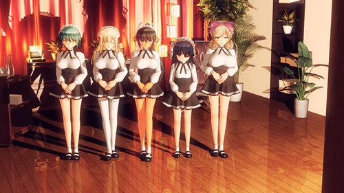 一个很有趣的3D动画,压缩包形式,一共是8个片段视频,总的来说就是油腻腻的,材质反光度太高了,3D渲2D的技术是不错,难道全部是用Blinn材质做的?剧情就是5个女仆VIP的按摩,无需翻译,直接能看懂。